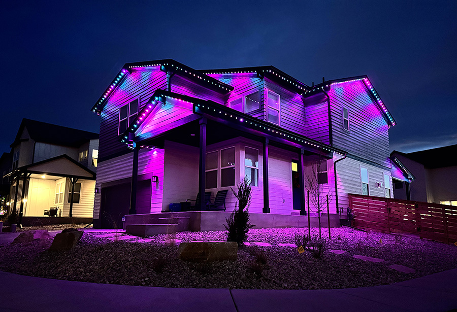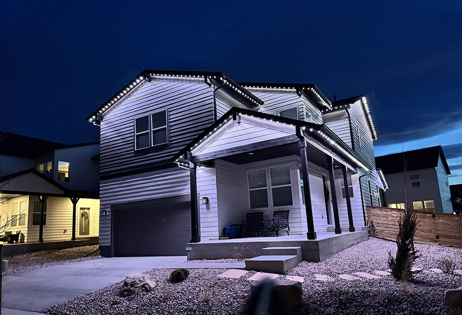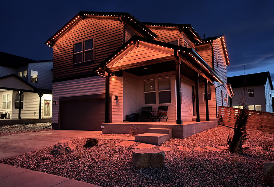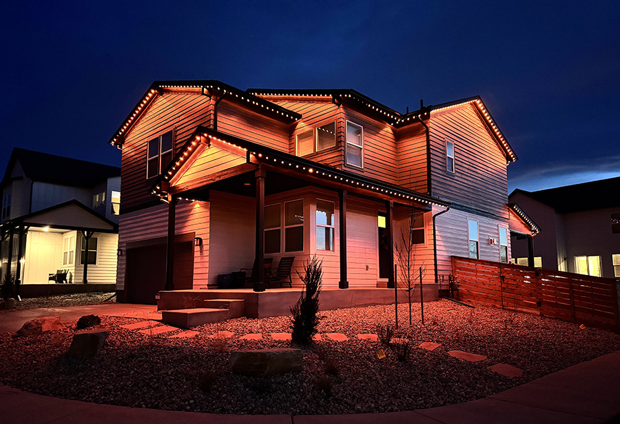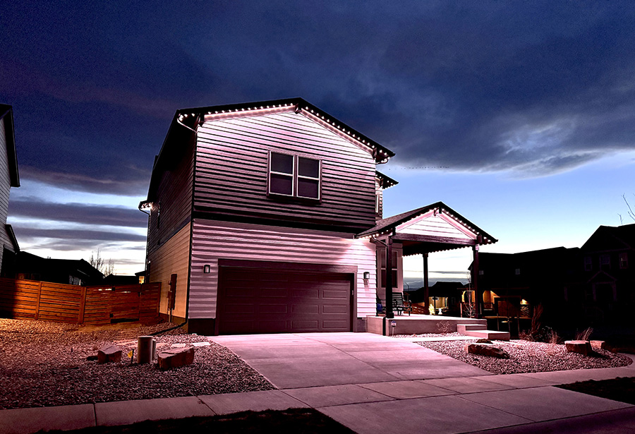 This premier property in beautiful Fort Collins was completed in December of 2024, and features over 300 linear feet of LED lights, installed in sturdy, custom fitted, color-matched track. The lighting on this incredible home was installed on the front, street-facing side, and rear.